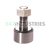 The KRV19PPA INA is a cam follower with needle rollers. These rolling elements combine high load capacity with a compact design. Cam followers are designed for use with various types of tracks. Thanks to a thick-walled outer ring, they can withstand high radial loads. Instead of an inner ring, they feature a solid, threaded stud, enabling easy mounting. Axial loads due to alignment errors or misalignment can be absorbed in both directions. They are not mounted in a housing bore, but a flat (counter) track provides support.